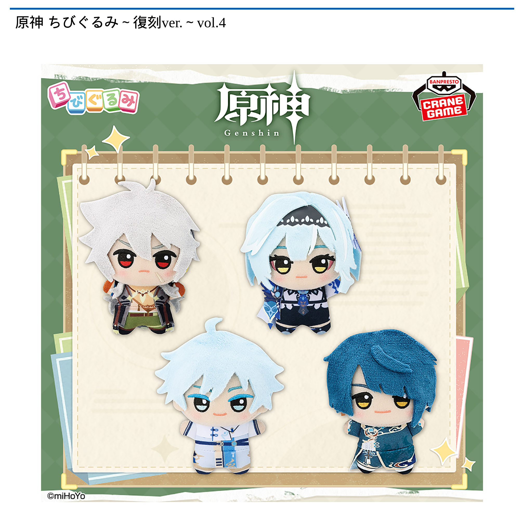 【プライズ情報】原神 ちびぐるみ~復刻ver.~vol.4