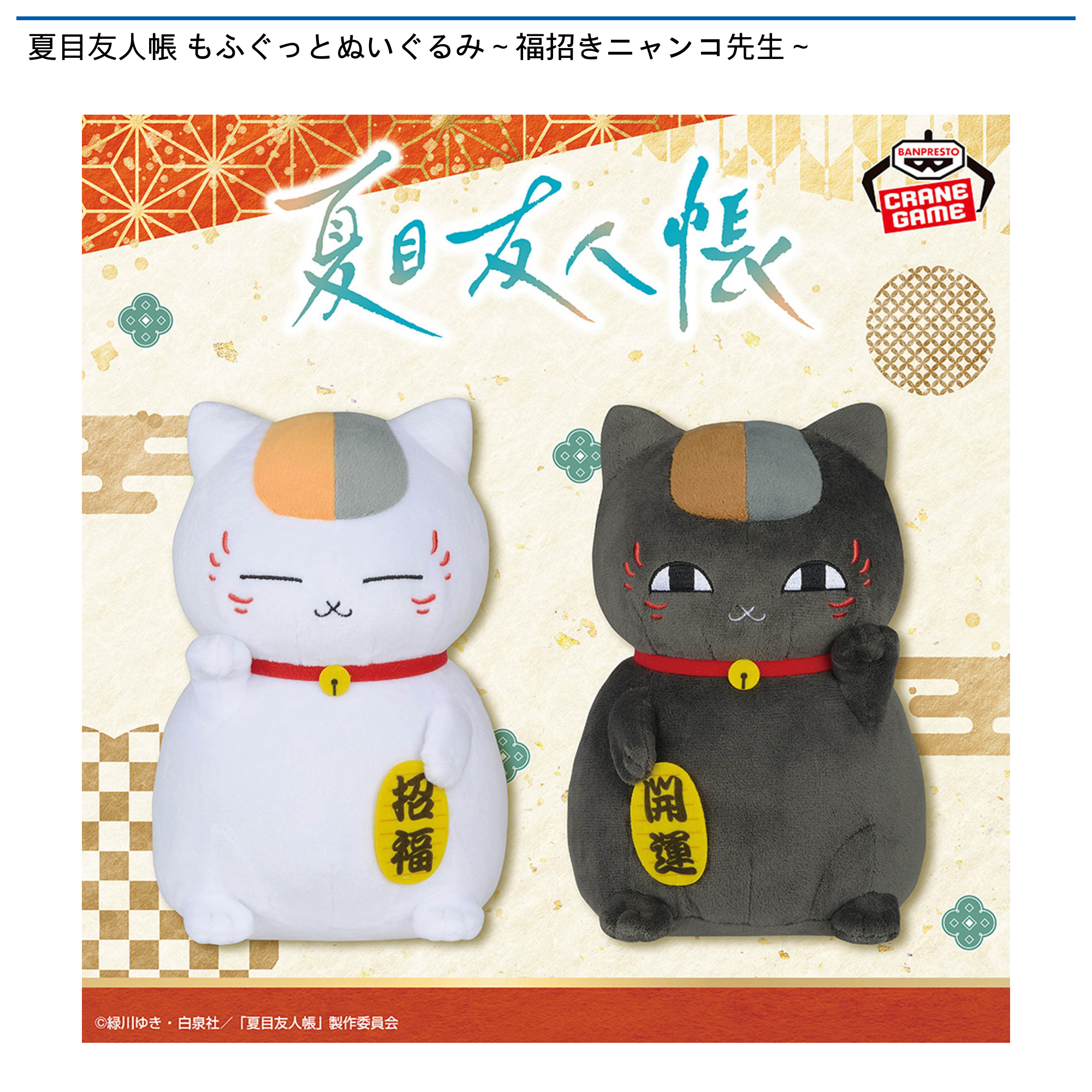 【プライズ情報】夏目友人帳 もふぐっとぬいぐるみ~福招きニャンコ先生~